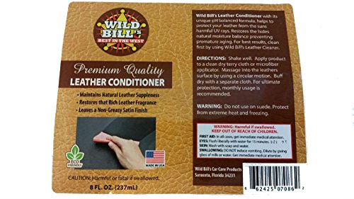 - Feature : Wild Bill's Leather Conditioner is proudly made in the U.S.A. and Eco Friendly / Great for protecting your leather from the suns harmful UV rays. / Restores leather to a perfect matte finish. / A premium pH balanced formula safe enough for stitching and fine leathers. / Perfect for all of your leather applications in the car, on the job or at home.