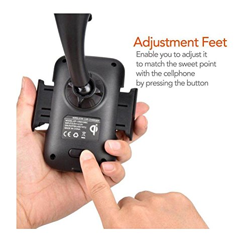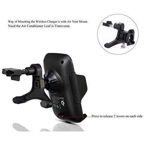 1. Product Standard: Qi 2. Input: DC9V/2A 3. Output: DC 9V/1670mA Max 4. Working Frequency: 110-205KHz 5. Charger Distance: 8~10mm 6. Transmit Distance:<6mm 7. Large charge area: adjustable charging holder, compatible charge for 50-100MM size smartphones 8. Strong window suction mount, can use on window and also dashboard 9.Compatible with: IPhone X, IPhone 8/ 8 Plus, Galaxy S6 Edge , Galaxy S7, S7 Edge, S8, S8 Plus, Nokia Lumia 920, LG Nexus 5/4/7. Other devices will charge at regular speed with an additional wireless charging receiver (Not Included). 10. Product size:16.3CM*8.2CM*7.1CM, product weight:164g.