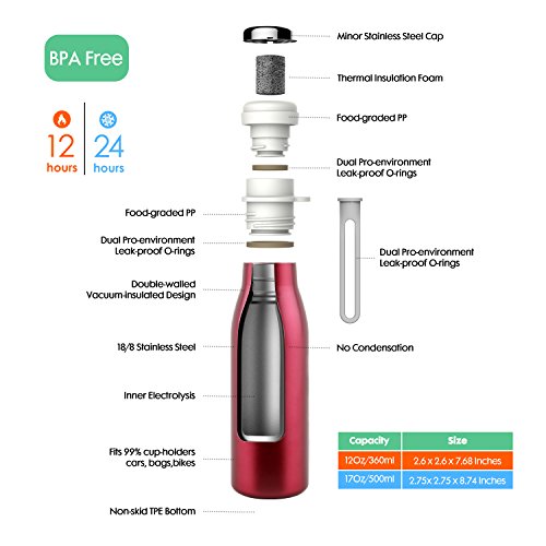 Scald-proof, Leak-proof, Non-sweat, Non-skid: This bottle features no condensation as well as dual Pro-environment Leak-proof O-rings for ultimate leak-protection and conveniently putting in your bag. It also has non-skid TPE bottom for steady standing and scald-proof rim for your drinking. Moreover, AKS bottle fits 99% cup-holders.