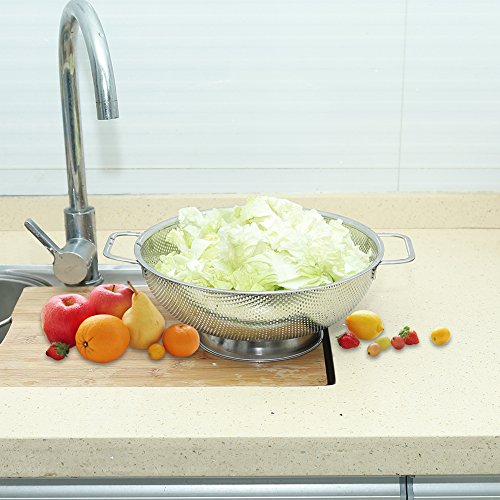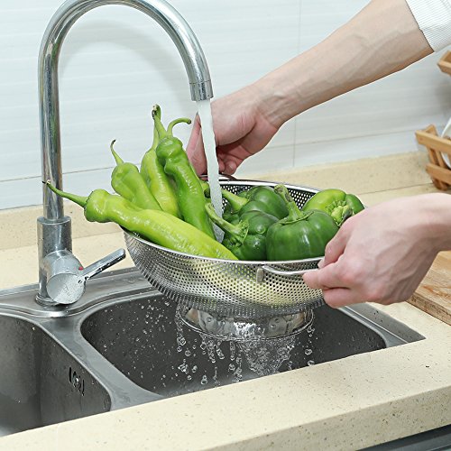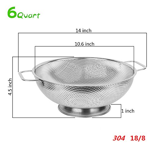 Specification: ?? Material: 304 stainless steel? Sand filtration buckle design so that it will be more clean and more peace of mind.Use 304 stainless steel by latest hydraulic industrial manufacturing a integrated colander that it is very strong, durable and rust-proof. It is vey healthy and easy to clean.? Rice and spaghetti won't fall through the holes. The holes in this colander are small enough that you can strain cooked grains, including rice, quinoas, pasta and most beans, pastas, as well as fruits and vegetables without any worries of clogging.? The stainless steel colander is a indispensable part of kitchen helper.? 0 |