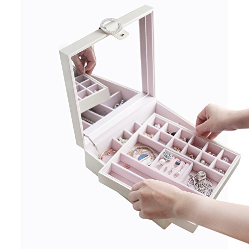 REAL MIRROR IN THIS RING ORGANIZER – In this box, there is real mirror under the cover so it makes this ring storage box more beautiful and worthily. With mirror, you can check your style when you dress up