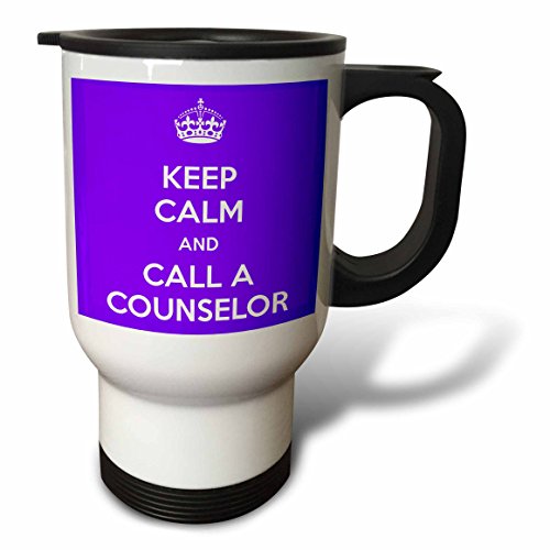 3dRose Keep Calm and Call A Counselor Purple Travel Mug, 14 oz, Stainless Steel, White