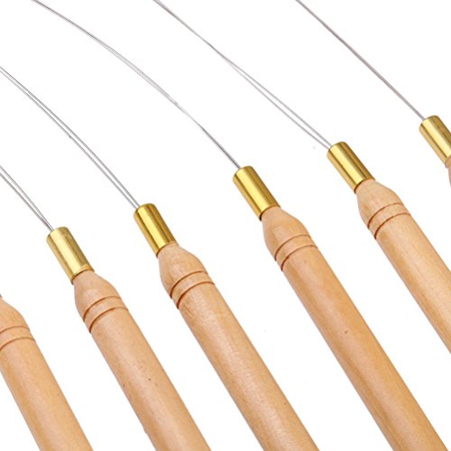 Tinksky Wooden Hair Extension Loop Needle Threader DIY Hook Tool, Pack of 12