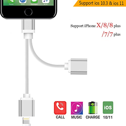 -. Feature : Support IOS 11 - iPhone X / 8 / 7 Headphone Adapter can support the newest iOS 11 now, and it perfect supports any lightning device that runs iOS 10 or later (including the iOS 10.3/11 system) / Premium Sound Quality - Supports the full ecosystem of lightning audio headphones and supports up to 24-bit 48khz lossless output, keep iPhone lightning earphones sound quality with no compromise. Also supports AUX in the car. Built with the same grade materials as premium headphone brands, Features premium digital audio conversion chip delivering a premium audio/sound output. / Charge your iPhone while listening to your favorite music: This dual function splitter enables you to use the charger and the earphone in the meanwhile, all kinds of headphones, 3.5mm earphone jack adapter and AUX cable supported. Connect the 8pin charger and headphone jack port, listening to the music and charging simultaneously with this cable. It is supportive of making phone calls as well. / Connect the 8 pin charger and headphone jack port, listening to the music and charging simultaneously with this cable. It is supportive of making phone calls as well. / This dual lightning adapter supports up to 48 kHz and 24-bit audio output, keep apple lightning ear pods sound quality as original.