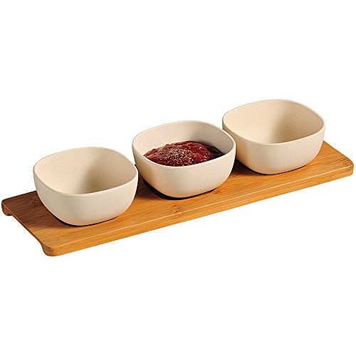 Kesper 41161 Dip bowls with Board 3 Piece Beige of Bamboo, Brown