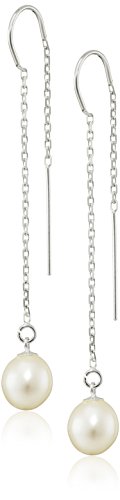 -. Title : Bella Pearl Dangling Threaded Silver Drop Earrings