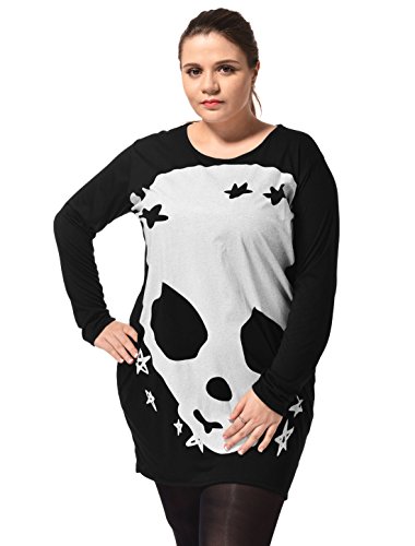 -. Title : Alya Ladies Plus Size Skull P.R.Ints Long Sleeves Tee Shirt Tops