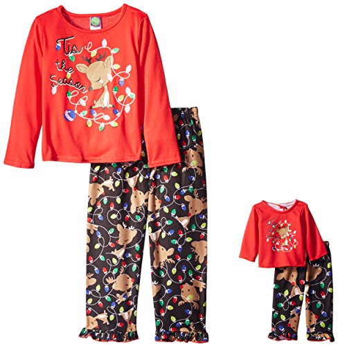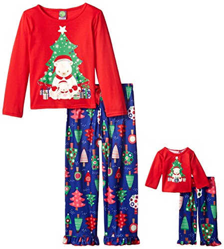 Dollie & Me girls long sleeve polar bear Christmas tree top and printed pant sleep set