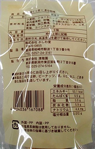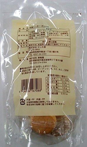 原材料:小麦粉、ショートニング、マーガリン(大豆)、県内産米粉、砂糖、きな粉(大豆)、加糖練乳、麦芽糖、加工黒糖、ラクトスクロース、ごま、食塩、コーンスターチ