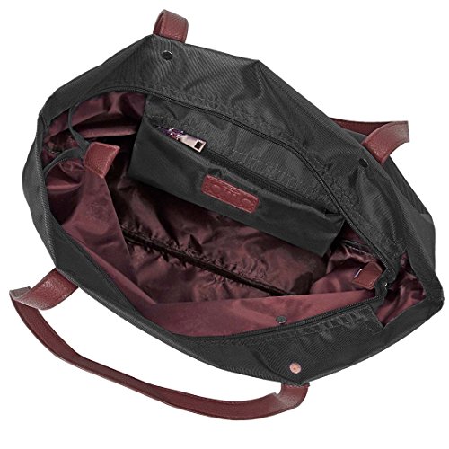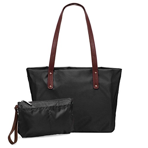 BMC Womens Jet Black Waterproof Nylon 2 in 1 Fashion Shopper Tote and Wristlet Clutch Handbag Set