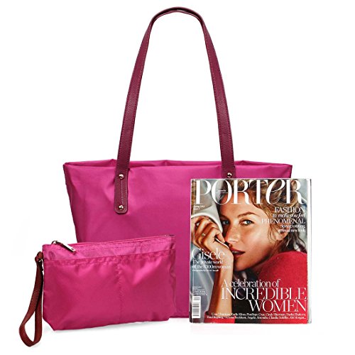 This jet black 2 in 1 shopper tote and wristlet bag set allows you bring all of your essentials with you, no matter where you go. These stylish bags are made with a durable nylon material and feature textured faux leather straps. The small wristlet clutch features extra exterior pockets for easy access items and can be easily stored within the larger tote bag. Within the main compartment of the tote, you will find an additional zippered side pocket as well as our b.m.c branding patch. These bags are not only practical, but also a fashionable addition to any look. *NOTE*: Due to differences between monitor displays, actual color may vary slightly from image. b.m.c is a registered trademark of Remi Collections LLC and is exclusively distributed by Bundle Monster. The b.m.c trademark is protected by US Trademark Law.