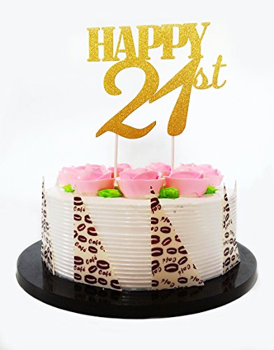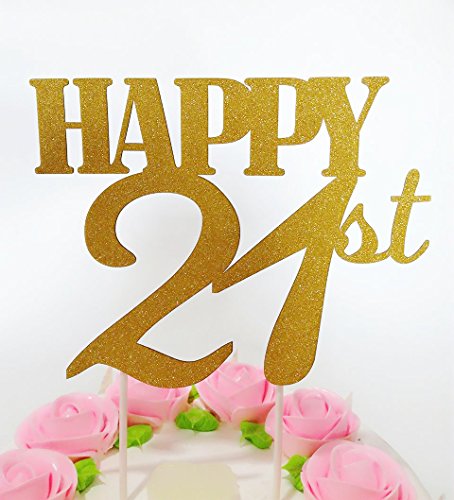 Gold Glitter "Happy 21st" Birthday Cake topper - Forever 21 Party Favors - 21st Birthday Party Decoration
