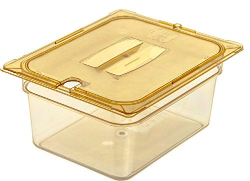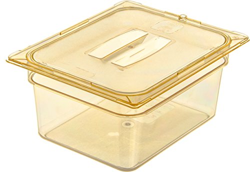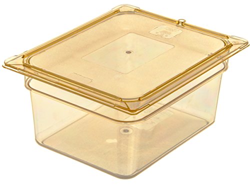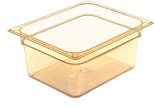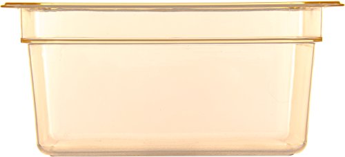 ReleaseDate : 2017-03-12 Studio : Carlisle Publisher : Carlisle Binding : Misc. Product Description The Carlisle 10422B13 half size, 6" deep, high heat food pan (-40°F to 375°F) is a single solution for cold storage, flash-freezing, microwave preheating and cooking as well as prolonged high temperature retention in steam table applications. Use the amber 8.7 quart pan to assemble, transport and display finished foods and toppings of all temperatures at events and buffet stations. Molded-in capacity indicators (quarts and liters) display measurement and facilitate portion control. A smooth rounded interior makes every scoop count and reduces food waste. The textured exterior edges resist scratching and offer improved handling. The pan is stackable for convenient storage. It is also compatible with Carlisle StorPlus Universal and Smart Lids (sold separately). It is NSF Listed, BPA Free and dishwasher safe. The food pan has overall measurements of 12.75 x 10.38 x 6 inches (L x W x D). 0