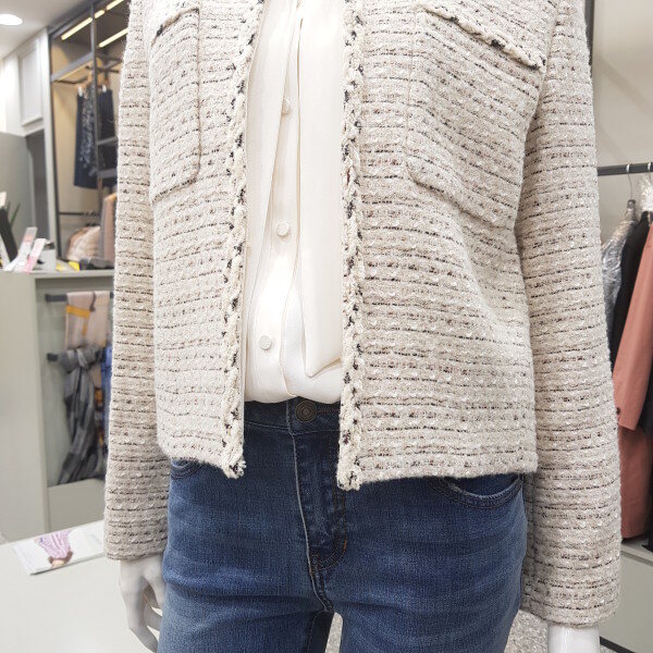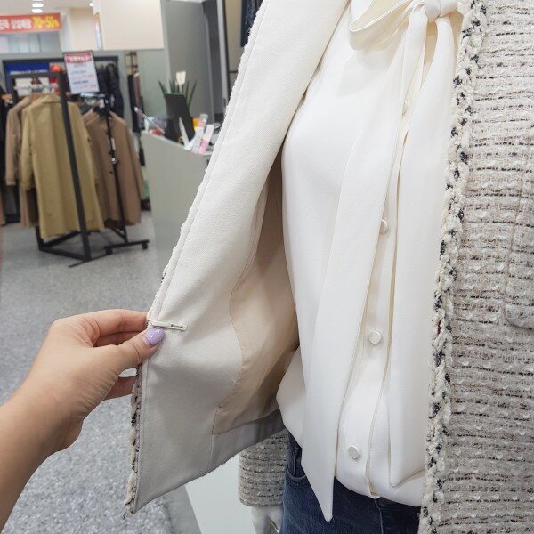 고급스런 모 알파카혼방소재의 심플한 트위드 자켓입니다. 여기저기 코디하시기 좋은워너비 자켓~