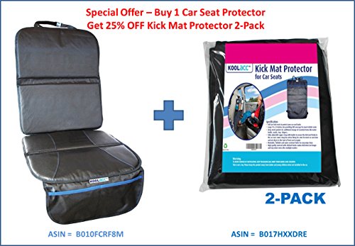 IDEAL FATHERS DAY GIFT + GET 25% OFF Matching KICK MAT PROTECTOR (B017HXXDRE) Scroll down to the Product Description area below. - EASY TO INSTALL - The KoolAcc Car Seat Protector is compatible with LATCH systems and is easy to install - It takes only a few minutes to insert the padded flap between the seat and seat back, and fasten the adjustable strap behind the headrest before placing the baby car seat in place.