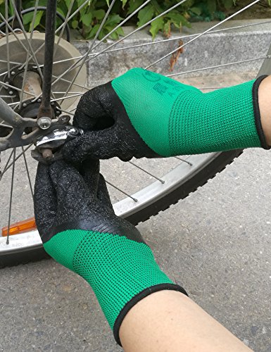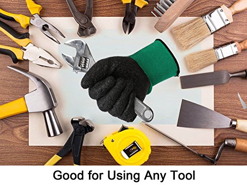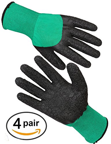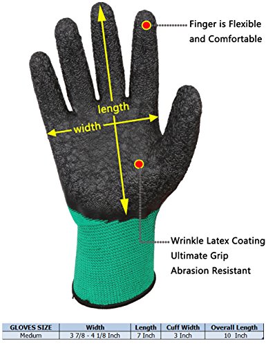 Wrinkle Textured Latex Coated Work Gloves for General Purpose , Men and Women Garden Gloves , Medium Size , Green , 4 Pairs