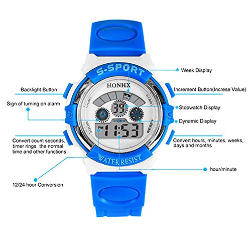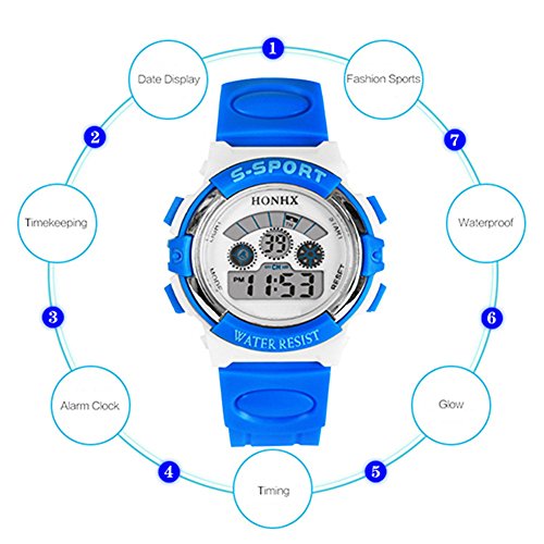 -. Title : HONHX Girls Rubber Band Multi-functional Glow Date Alarm Clock Sport Waterproof Digital Wrist Watch -Rose red