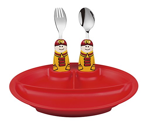 Eat4Fun Duo Collection Eat & Play 3-Piece Dinnerware Set, (Red Plate, Fireman Spoon, & Fireman Fork)