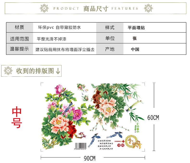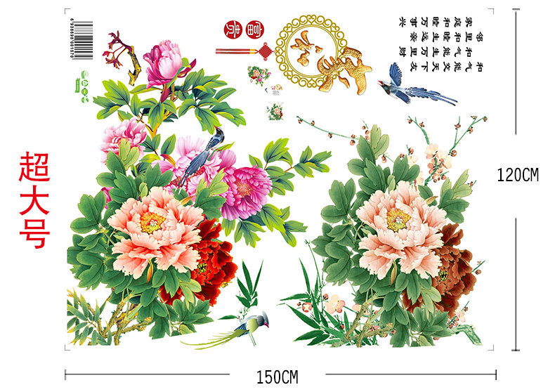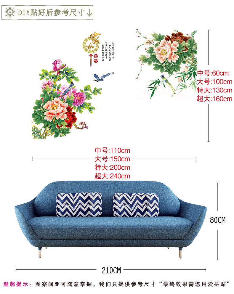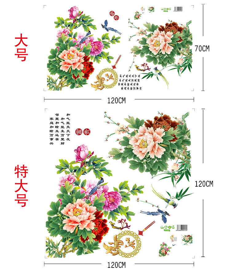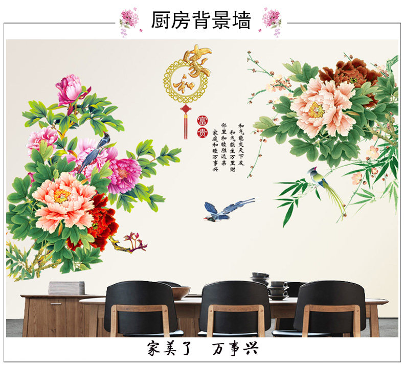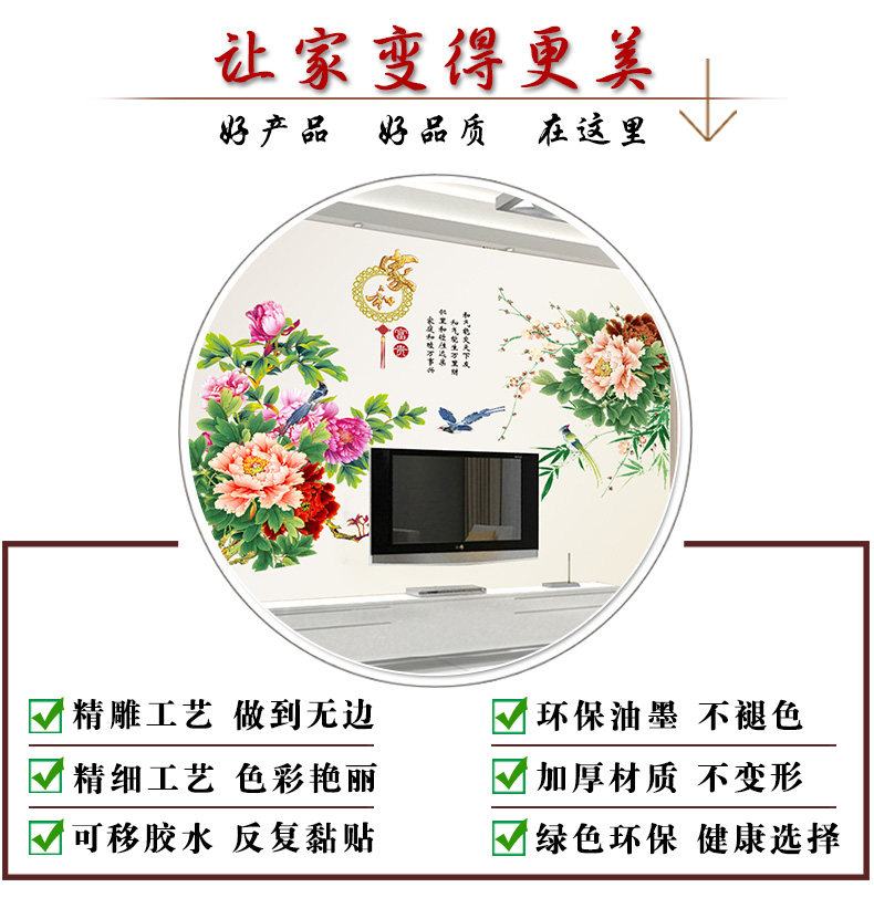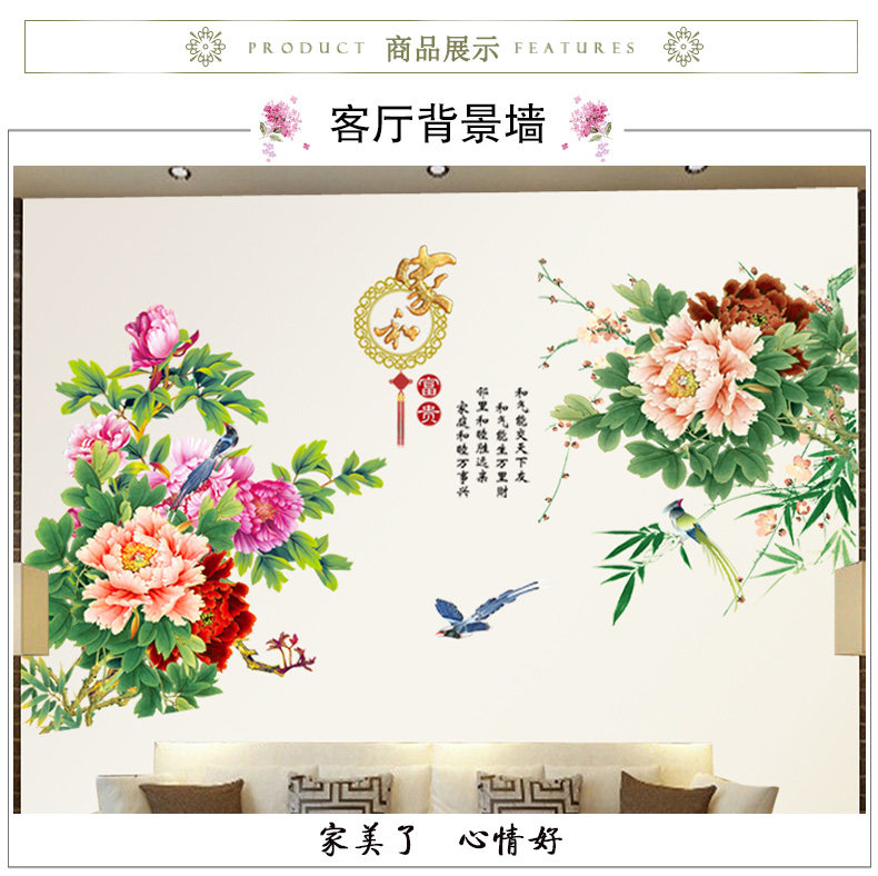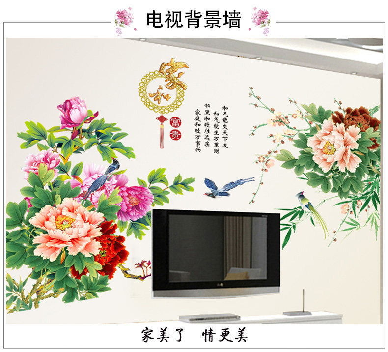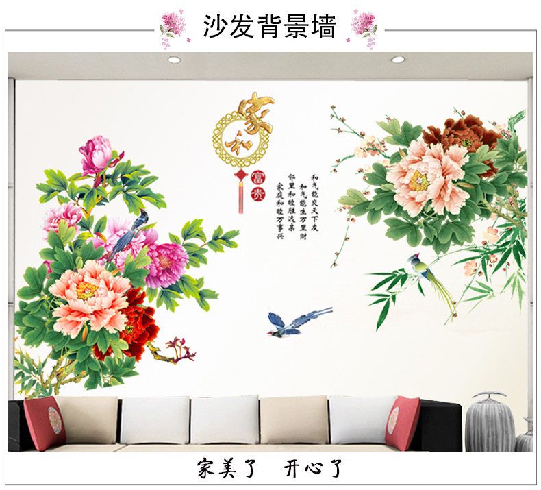 家和富贵花卉墙贴画 客厅沙发电视背景墙装饰贴纸 可移除自粘墙贴