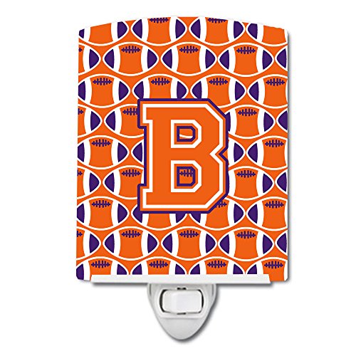 Caroline's Treasures Letter B Football Orange, White and Regalia Ceramic Night Light, 6 x 4", Multicolor