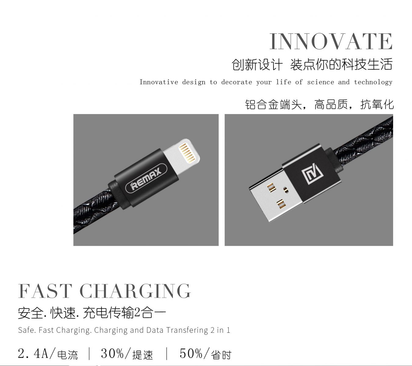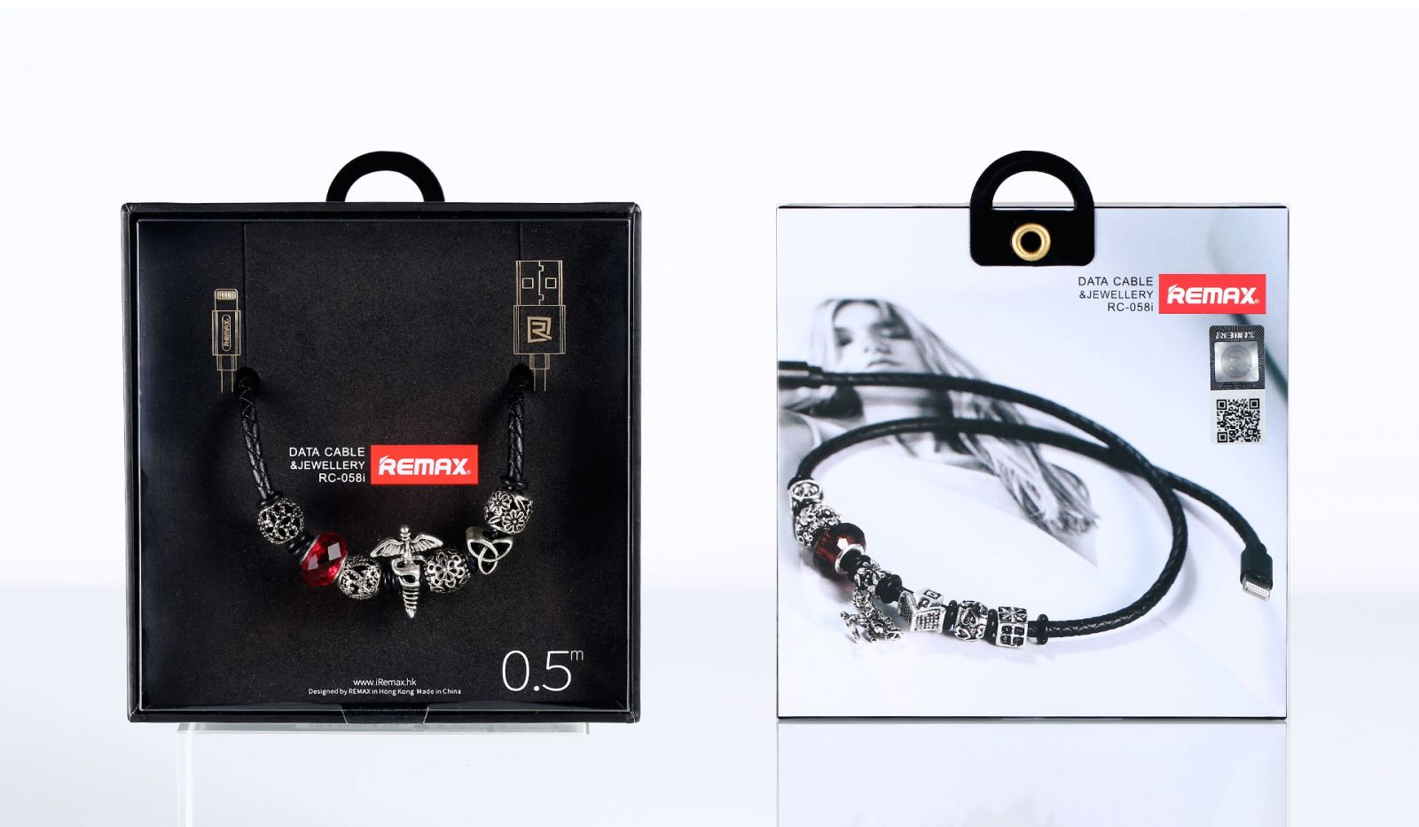 Pada kabel Remax RC-058i terdapat crystal ornament dan TPE cortical weave yang membuat kabel terlihat lebih menarik, kabel unik yang membuat pemiliknya memiliki kabel yang berbeda dari kabel biasa.