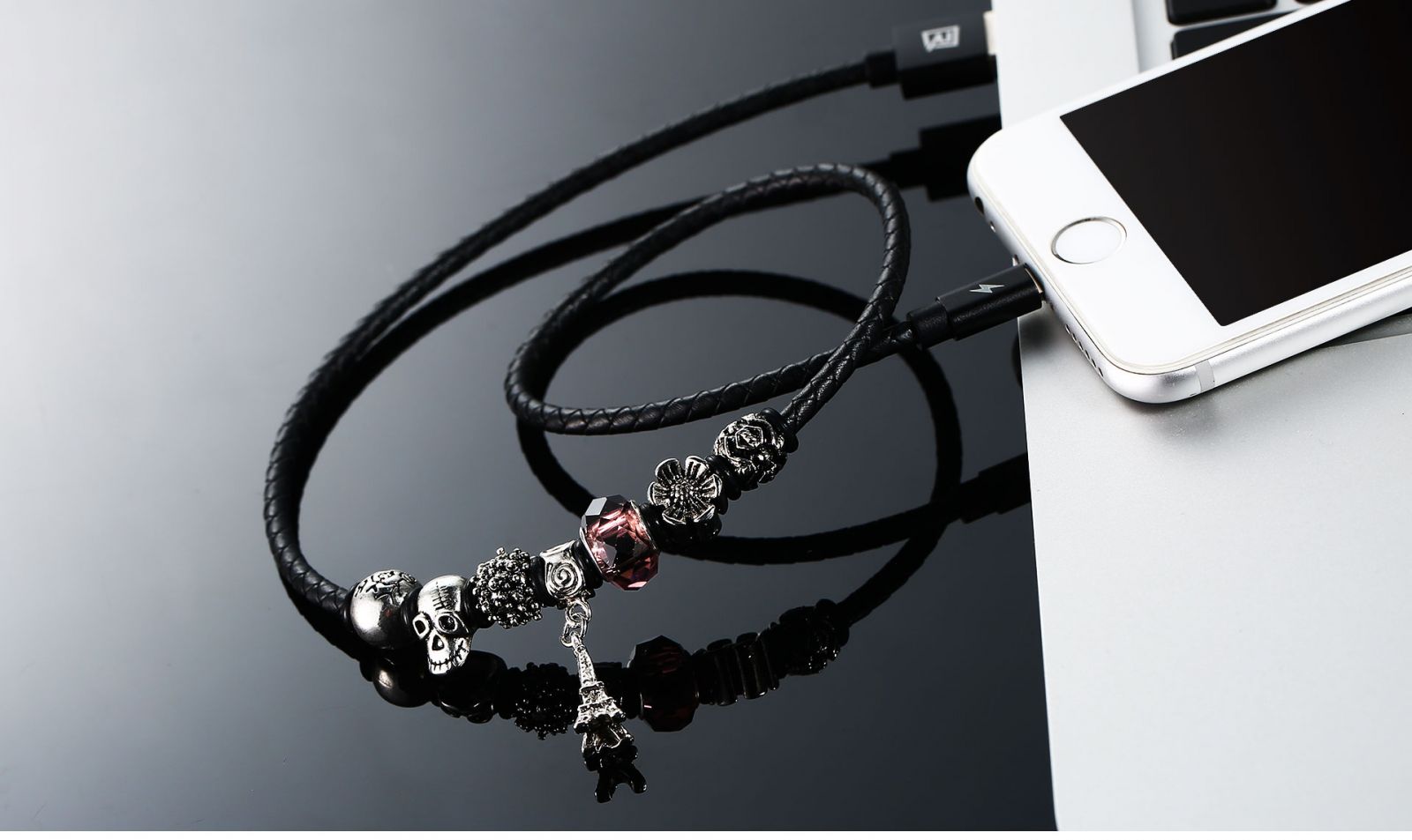 Kabel lightning jewellery terbuat dari bahan TPE (molding injection) & Tinned Copper dan dibalut oleh desain yang artistic, crystal ornament membuat kabel ini terlihat lebih keren. Kabel ini juga memiliki output arus yang tinggi, membuat pengisian smartphone menjadi lebih cepat / fast charging.