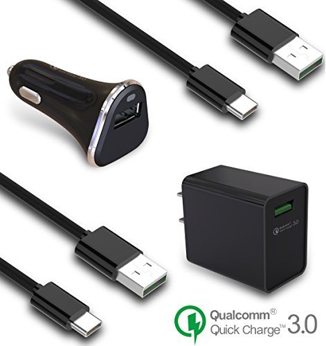 Samsung Note 8 / Galaxy S8 / Galaxy S8 Plus / (USB-C) USB UL-Certified QC 3.0 Kit by Ixir - {Car Charger + Wall Charger + 2 Type-C Cable} True Digital Adaptive Fast Charging 80% faster charging!