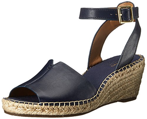 Espadrille-inspired sandal with adjustable ankle strap and braid-wrapped wedge