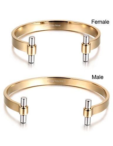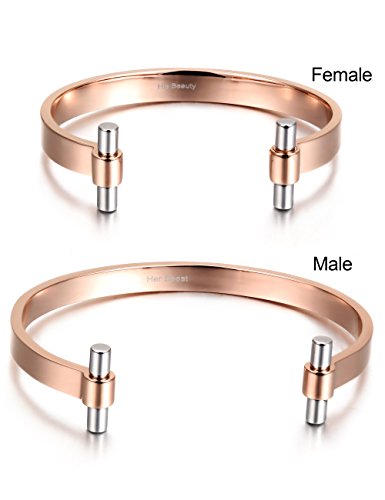 Classic and Durable Stainless Steel couples Bracelet: High Iron Gun/Gold/Rose Gold electronic polished Cuff Bracelet, making bracelet shine and smooth. Nickel free, lead free and stainless steel high anti-tarnish, anti-fade, anti-corrode, ant-stain and anti-allergic.