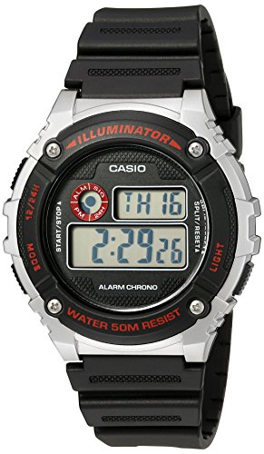 -. Title : Casio Men's 'Illuminator' Quartz Resin Automatic Watch, Color:Black (Model: W-216H-1CVCF)