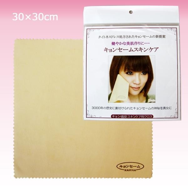 40度程度のお湯でスキンケア用キョンセームを充分に濡らし、水滴の切れる程度に軽く絞り洗顔石鹸・クレンジング剤を付けて優しく円を描くように軽くご使用ください。(綺麗に保つ為にアイライン・マスカラ・口紅等は予め軽く落としてから使用される事をお勧めします。化粧品の色が付いても性能・能力には問題ありません。)