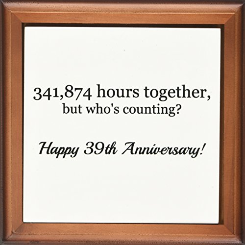 3dRose ft_224684_1 Happy 39th Anniversary 341874 Hours Together Framed Tile, 8" x 8"