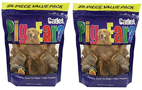 -. Feature : 50 Pack (2 Packages with 25pcs Each)Cadet Pig Ear Dog Chews / Premium South American or German pig ears / High in protein Highly digestible / Long-lasting, flavorful chew / Value pack