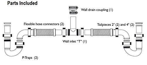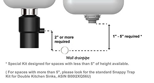 All In One Kit-Special Configuration for installations with limited height (1"-5") between sink strainer and wall drainpipe. For clearances above 5" see standard Snappy Trap kit ASIN B00I2XQ56U.