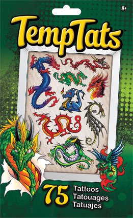 -. Feature : 75 Tattoos / Apply with wet cloth / Easy removal with baby oil or rubbing alcohol