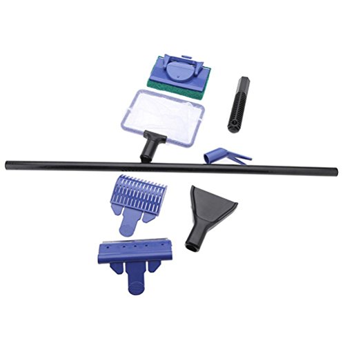 Features - Color: Black, blue. - Material: ABS plastic. - Size: 43 * 10 * 3cm. - Includes fish net, gravel rake, scraping algae, fork and sponge brush. - It can be easily assembled and disassembled with the strap. - Remove the dirty things from the bottom of your tank effectively. - Perfect for cleaning aquariums and fish tanks.