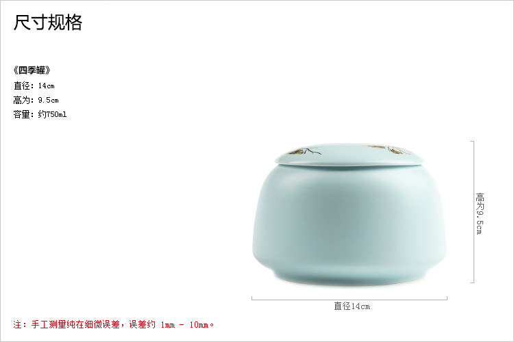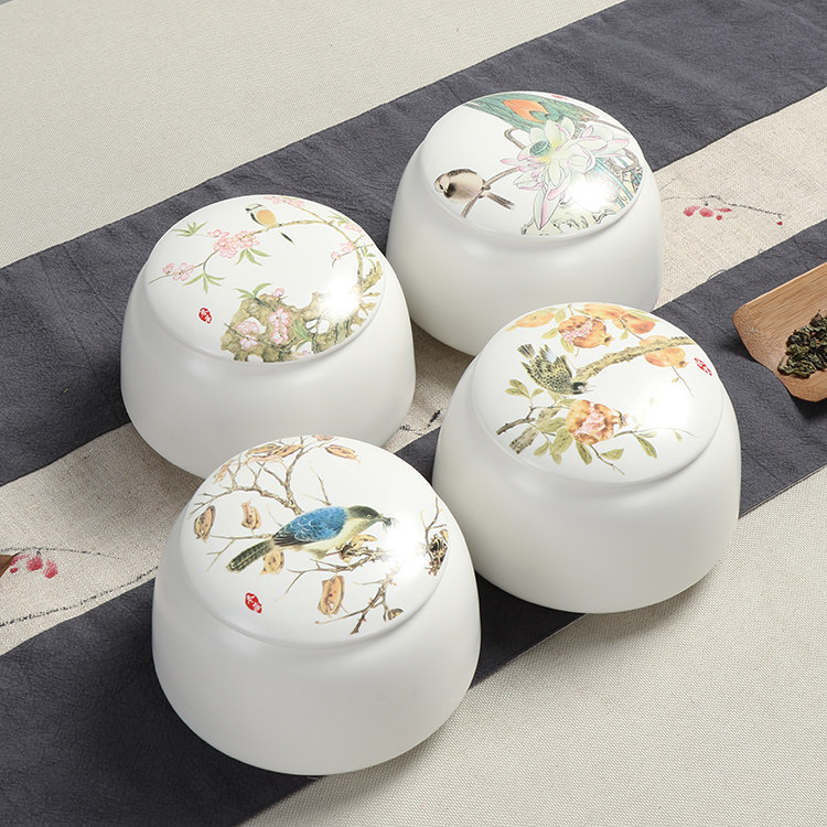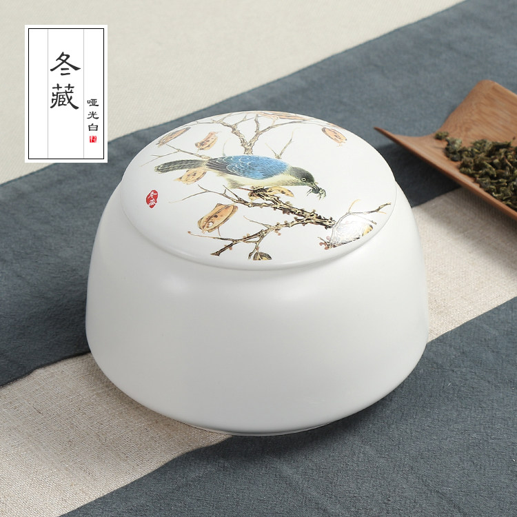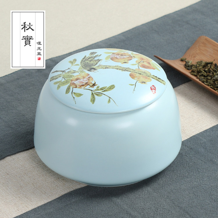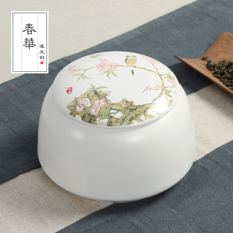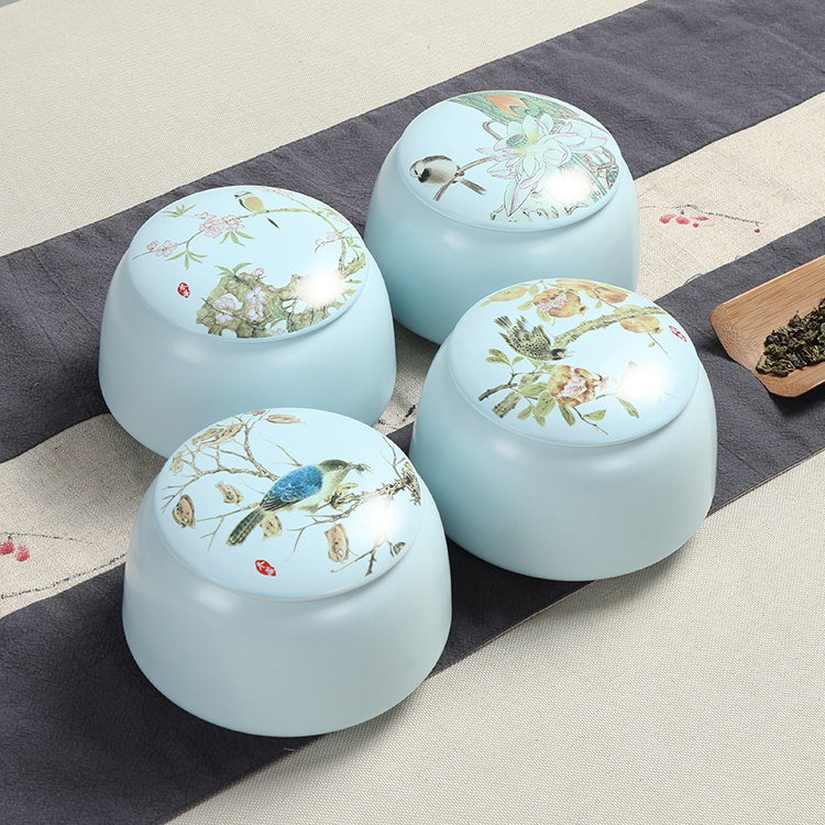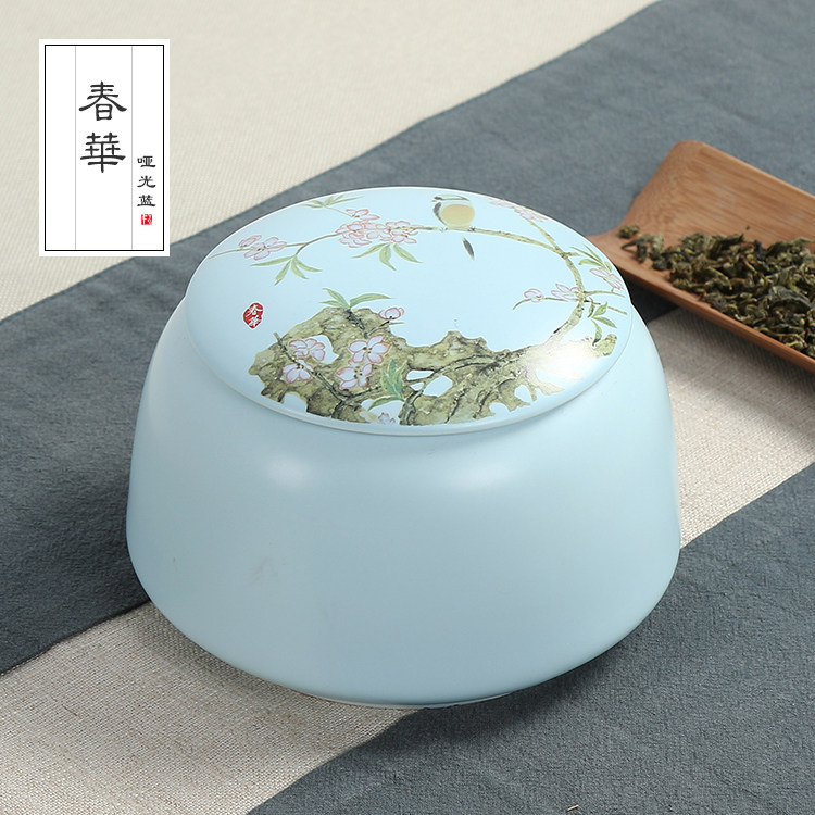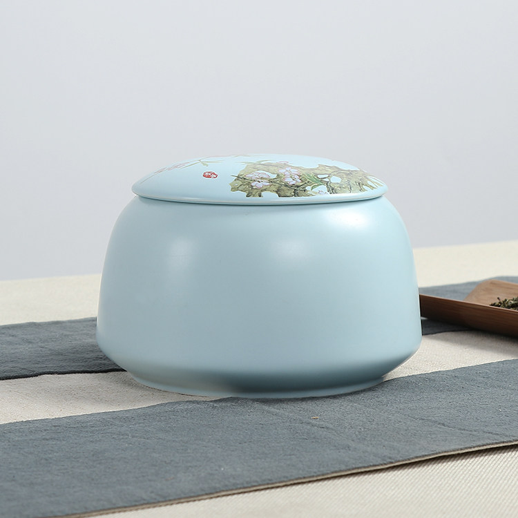 陶瓷茶叶罐 哑光釉普洱醒茶罐 中号密封储物罐 淡雅四季罐