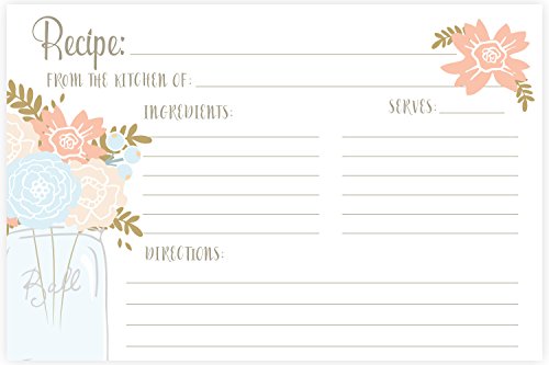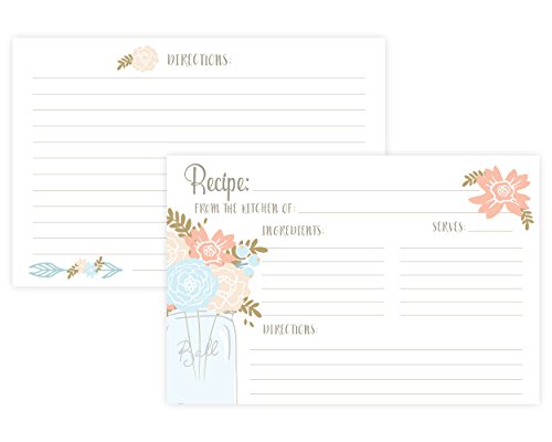 Mason Jar Floral Recipe Cards (Set of 50) 4 x 6 Double Sided Cards