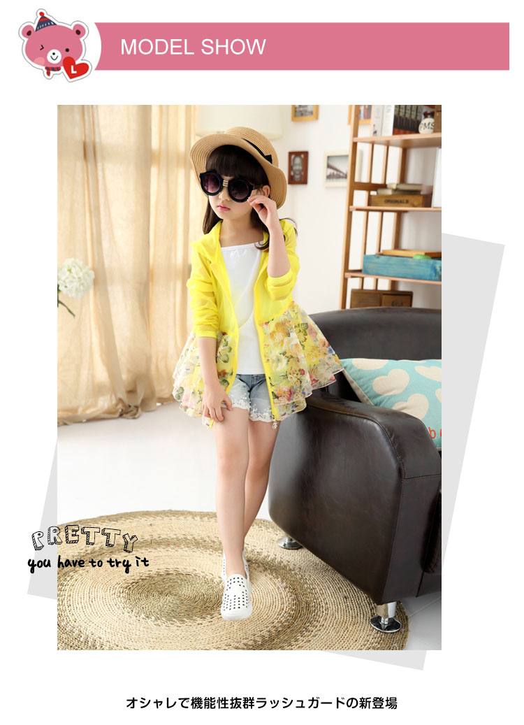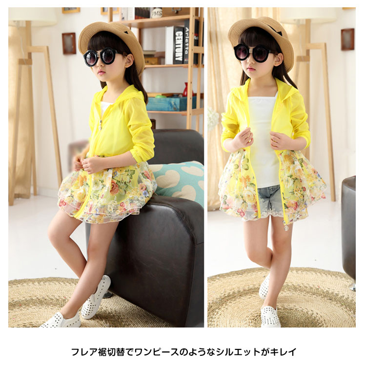 | オシャレで機能性抜群ラッシュガードの新登場フレア裾切替でワンピースのようなシルエットがキレイ我が可愛い子はいつでも可愛くいられますさらっと着るだけで簡単に日焼けからお肌をガード紫外線の厳しい季節は欠かせないマストアイテムです | |