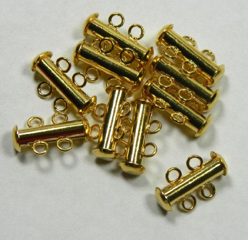 10 Pack Multi 2 Strand Slide Lock Clasps, Gold Plated Brass