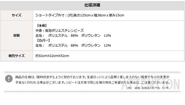 ●ショートタイプ:(約)125cmx38cmx15cm