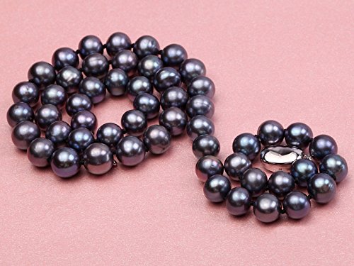 Description *Made of 9-10mm black round cultured freshwater pearls,the set includes a necklace and bracelet and earrings.