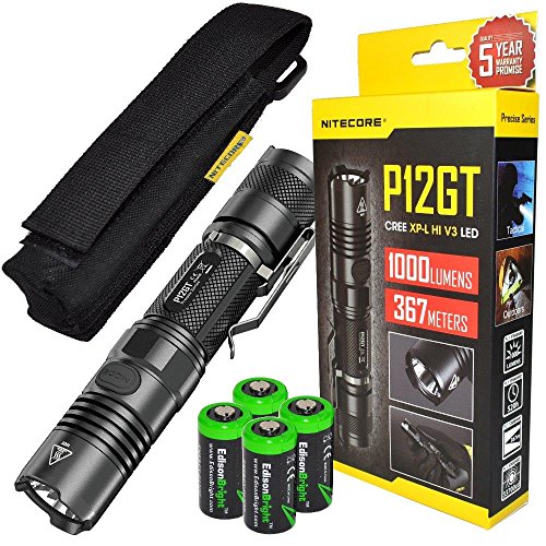 -. Title : Bundle: NITECORE P12GT 1000 Lumen high intensity CREE LED 350 yards long throw tactical flashlight with 4 X EdisonBright CR123A Lithium Batteries