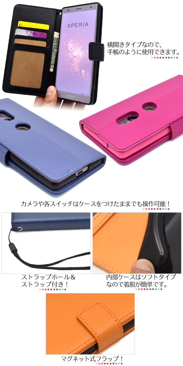 衝撃やキズなどから守ります。 また、内部はソフトケースなので着脱が簡単です。 背面を折り返すとスタンドとして使用できるので、動画視聴に便利です。 落下防止に最適なストラップとストラップホール付きです。 横開きタイプなので、手帳のように使うことができます。 また、内側に3つのカードポケットとサイドポケットが付いています。 ※液晶画面の端が湾曲しているため、内部ケースが外れやすくなっています。ご了承ください。 ※スマートフォンは付属しません。※ライセンス商品ではありません。 |