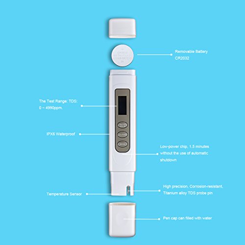 Aestheticism TDS Tester 2.0 Automatic calibration Temperature Tester Testing Household Water and Plant Nutrient Levels Family Health care for Baby, Pregnant Women, Elderly