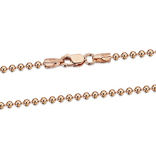 -. Binding : Jewelry -. Brand : Amberta -. Department : womens -. Feature : PREMIUM JEWELRY - Crafted from 925 sterling silver and covered in 18k gold tone overlay. Sturdy, durable spring clasp. Tight closure to reduce the chance of catching on fabrics or hair. / QUALITY ASSURED - Designed to last a lifetime. Made in Europe. Gold encrusted for protection against tarnish. Stamped .925 for authenticity and quality approved. / HYPOALLERGENIC - Amberta silver is nickel free, nontoxic and corrosion resistant. You won't get any irritation or skin rashes. / DELICATE DESIGN - Very lightweight and comforatble to wear. Chain Width: 2 mm. Metal Weight: 5.1 g. Chain Length: 16 in/40cm. / JEWELRY CARE GUIDE - Comes with a free guide on how to keep, store and clean your silver jewelry. -. Label : Amberta -. Manufacturer : Amberta -. Model : BIA-ROSE-CHAIN-020-200 -. MPN : BIA-ROSE-CHAIN-020-200 -. PartNumber : BIA-ROSE-CHAIN-020-200 -. ProductGroup : Jewelry -. ProductTypeName : FASHIONNECKLACEBRACELETANKLET -. Publisher : Amberta -. Studio : Amberta -. Title : 14K Rose Gold Plated on 925 Sterling Silver 2 mm Ball Chain Necklace 16" 18" 20" 22" 24" 28" in