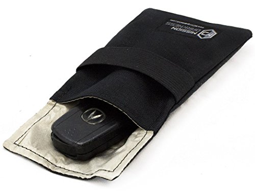 -. Feature : The Mission Darkness Keyfob faraday bag is the only bag on the market with forensic-grade shielding, our entire company depends on it! Don't trust other keyfob bags with your expensive vehicles. Keep a spare key in your car without your car knowing it! Military-grade faraday bag designed for law enforcement. / Highest shielding on the market with over 80dB rating - Dual Paired Seam construction. Shields keyfobs, wifi cards, thumbdrives, and other small devices from ALL wireless signals. EMI Shielding & RFI Shielding / 100% signal block rating. Blocks WiFi (2.4 & 5GHz), bluethooth, cell signals (even 4G LTE), GPS, RFID, and Radio signals with 80dB+ average attenuation / Fold-over flap ensures signal loss, don't trust velcro closing methods. Unique Serial # on every bag. Fold for covert carry. Dimensions: 3.5" x 5.5" x .1" / Secure closable flap with elastic accommodates multiple sizes of small devices, water resistant outer materials