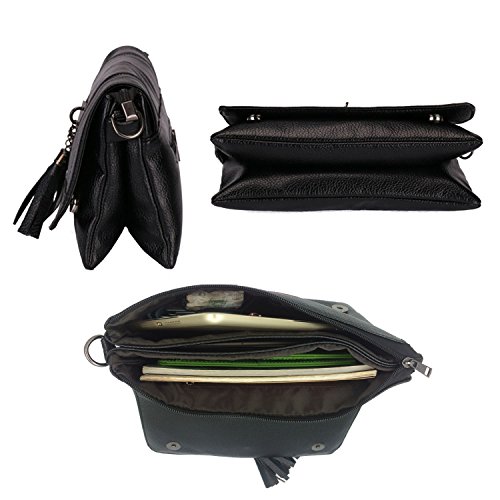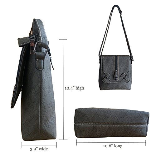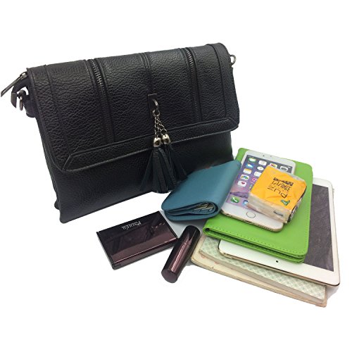 This purse features flap front construction and multiple pockets for organization. Large capacity for storage your books, tablets, wallets, cellphones, etc.