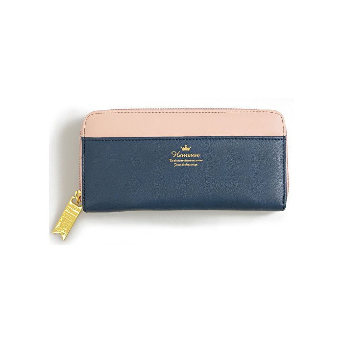 D-LOOP 네이비 F (deal《―푸》)D-OOP PU레더 롱 워렛 바이 컬러 장지갑 용돈 만들어 넣음(담는 그릇·상자 등) 카드 케이스 지갑 장지갑 PU레더 레더 가죽 라운드 패스너 합가죽