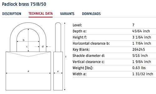 -. Title : ABUS 75IB/50 KD B All Weather Chrome Plated Brass Keyed Different Padlock